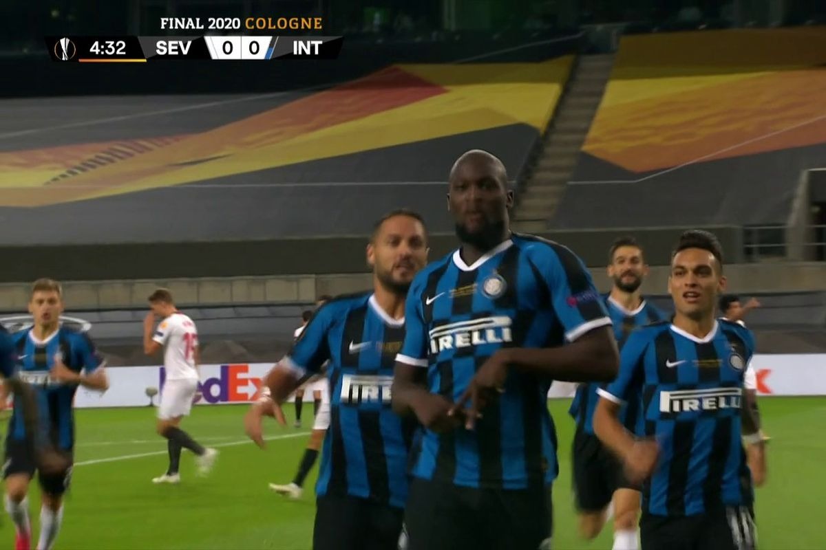 Inter logró el 1-0 frente a Sevilla en el Estadio Rhein Energie de Colonia (Alemania) por final de Europa League 2020. Esto con gol de penal del delantero belga Romelu Lukaku. Mira el video. ¡Tremendo arranque!
