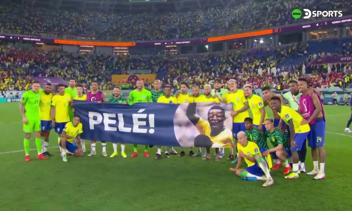 Tras la goleada a Corea del Sur (4-1) en el Stadium 974 - Ras Abu Aboud, los dirigidos por Tite se reunieron en medio del campo y sacaron una cartel con el rostro de O Rei. Ellos le dedicaron la clasificación a los cuartos de final del torneo al tres veces campeón del mundo.