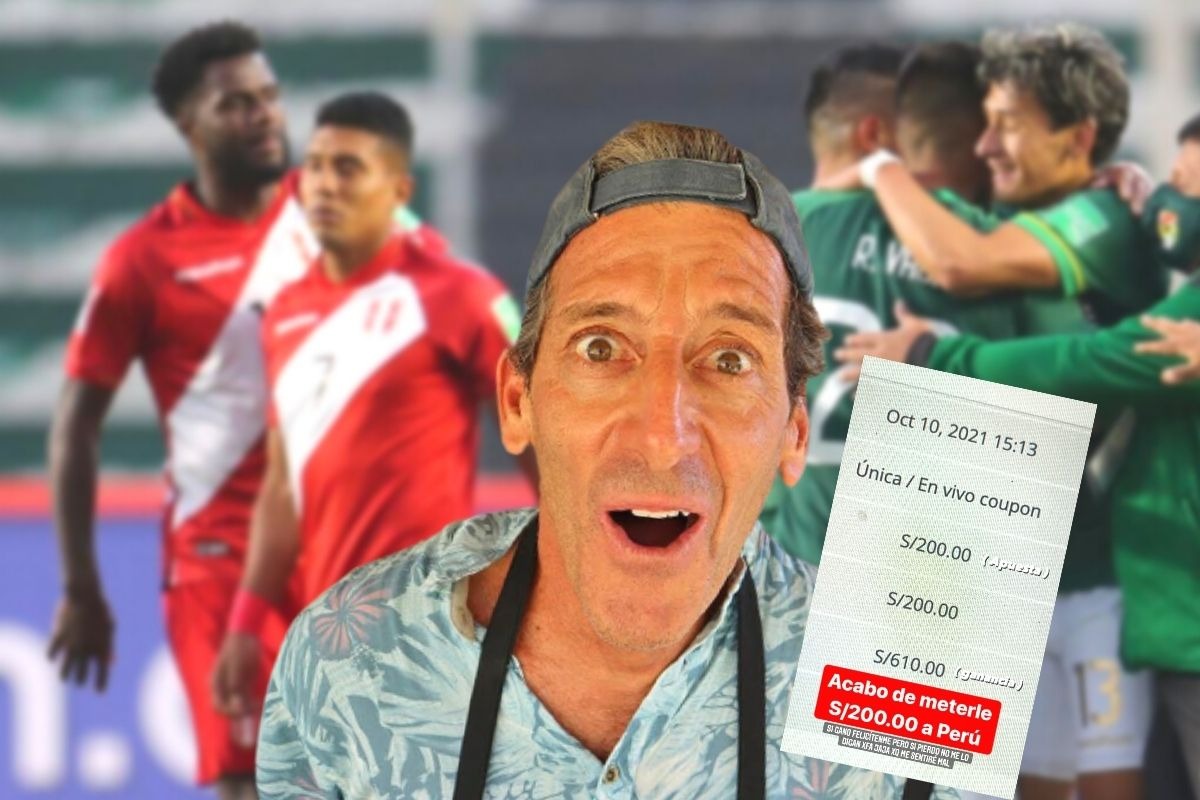 El popular personaje esperaba llevarse al bolsillo más de 610 soles con el ‘golpe’ en Bolivia, pero no contó que un error de Christian Cueva, quien perdió el balón por meter una huacha a un rival, lo dejaría con las manos vacías, pues esa jugada terminaría en el 1-0 a favor del cuadro verde y la tristeza para el conocido youtuber.