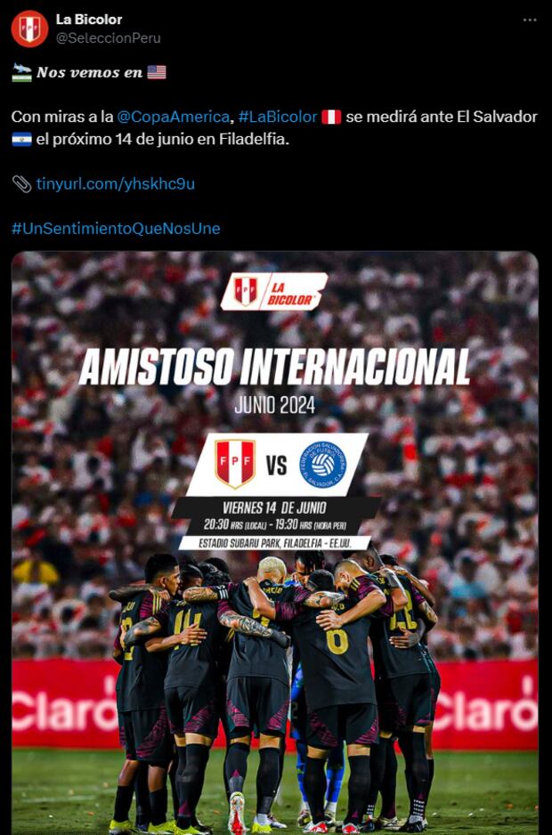 TENEMOS NUEVO RIVAL. La Federación Peruana de Fútbol (FPF) anunció que la selección enfrentará a El Salvador antes de su debut en la Copa América de Estados Unidos 2024, donde nos enfrentaremos en fase de grupos a Chile, Argentina y Canadá.
