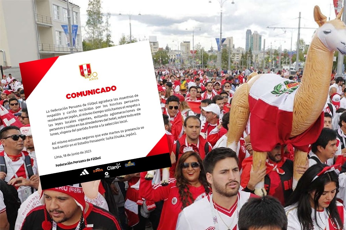 En un comunicado publicado en sus redes sociales, la Federación Peruana de Fútbol pidió a los hinchas nacionales respetar las leyes locales y evitar aglomeraciones y ruidos en los exteriores del hotel de concentración.