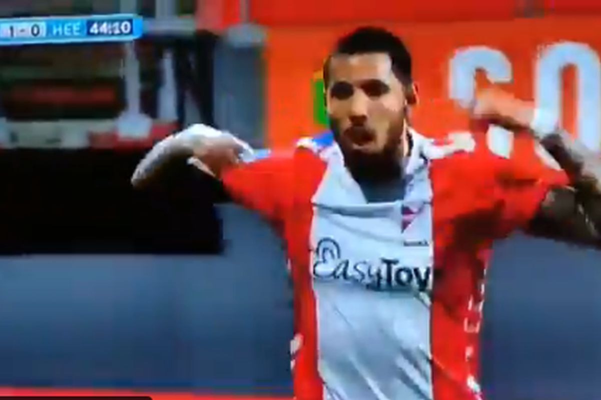Llegó a los 44′ de la primera parte. Sergio Peña metió un ‘sombrero’, jugó en ‘pared’ con su compañero Michael le Leeuw y consiguió el primero de Emmen en condición de local.