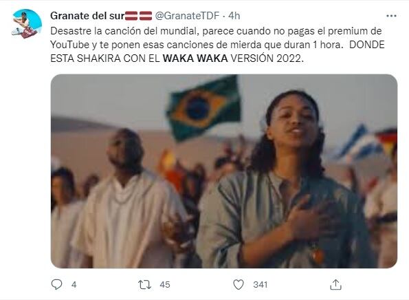 Waka Waka y Shakira fueron tendencias en Twitter pues para muchos el nuevo tema no completa las expectativas de los fanáticos del deporte rey. Por ello, los fanáticos de Shakira ya están usando el hash tag #ShakiraForQatar2022 para pedir a la FIFA que convoque a la estrella colombiana a esta cita mundialista.