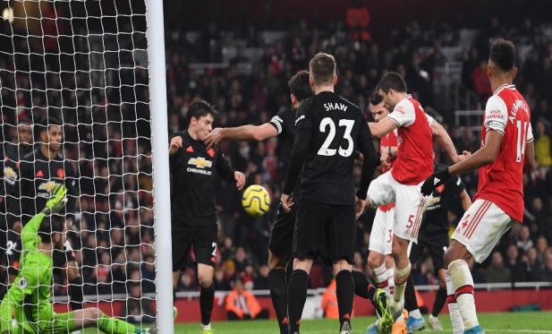 Sucedió en el minuto 42 del primer tiempo: Pépé colocó un tiro de esquina en la cabeza de Lacazette, pero fue detenido por De Gea, quien dio rebote. Lamentablemente para el arquero de Manchester United, Sokratis recibió el balón.