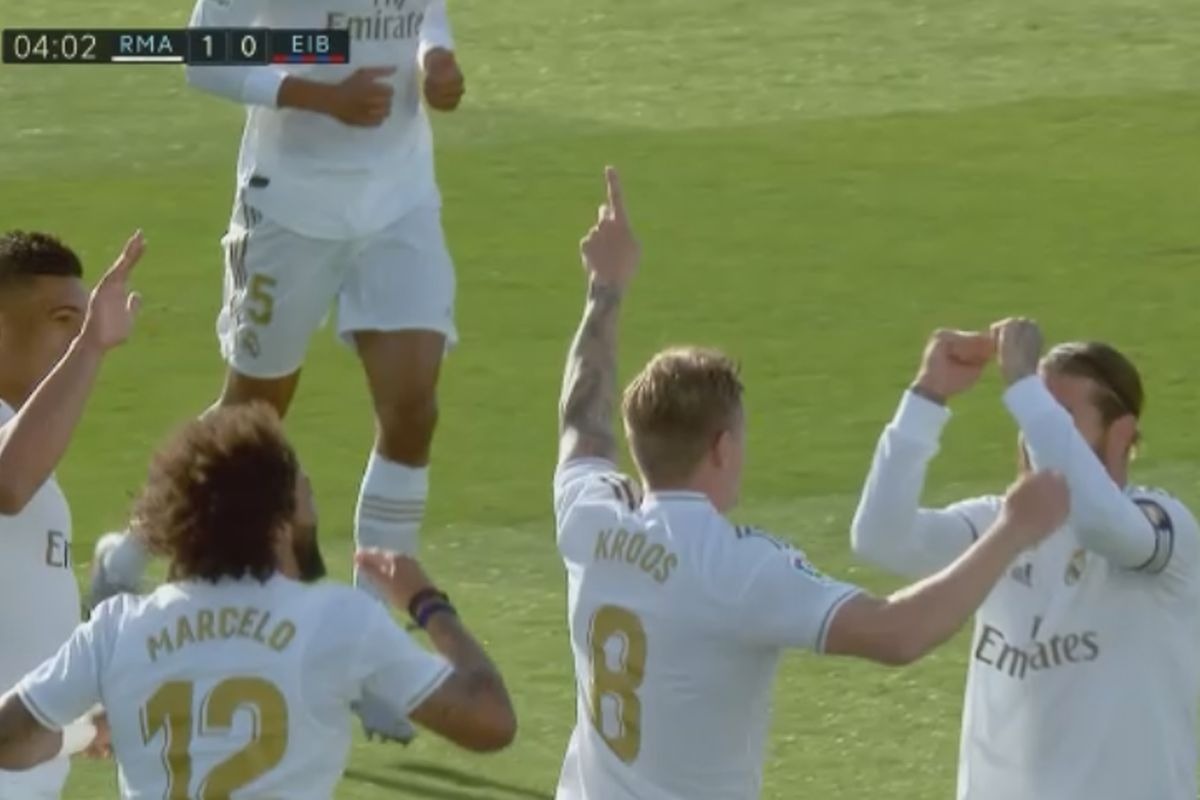 Pasó a los 3′ de la primera parte. Toni Kroos aprovechó un mal rechazo de la defensa de Eibar y consiguió el primero de Real Madrid en su campo alterno de LaLiga.
