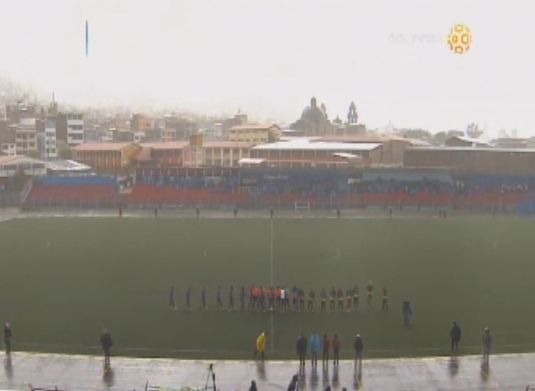 Pese a las malas condiciones, el partido entre UTC y Comerciantes Unidos arrancó. Pero minutos más tarde, la lluvia paró repentinamente, condición que es muy común en las ciudades de altura.