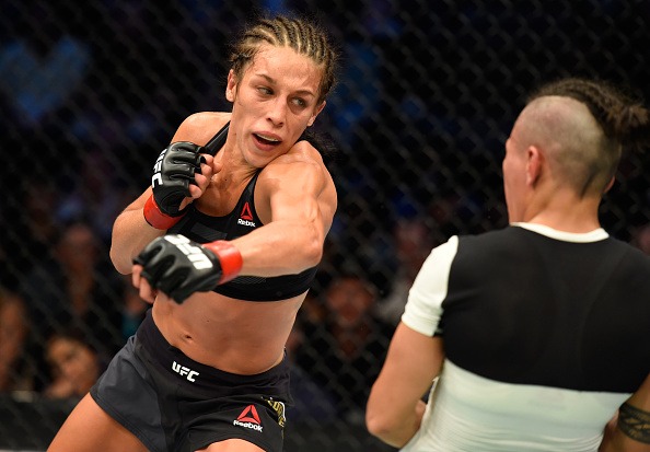 La campeona Joanna Jedrzejczyk mostró su gran nivel de striker al golpear desde diferentes ángulos a la valiente peleadora brasileña.