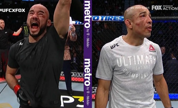 José Aldo no pudo con Marlon Moraes en su debut en la división de los 61 kgs. (peso gallo) en una pelea de una gran calidad técnica, en la cartelera estelar del UFC 245, en Las Vegas; Nevada. José Aldo mostró un gran nivel, incluso llevó la iniciativa de la pelea en el segundo y el tercer asalto, pero al final los jueces declararon ganador a Marlon Moraes por decisión dividida (29-28, 28-29, 29-28).