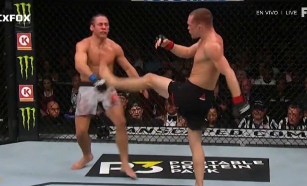 Pese a que pudo frutar a su oponente, en los dos primeros asaltos, la condición física de Urijah Faber ya no es la misma y así, en el tercer episodio fue alcanzado por una patada directo al rostro.