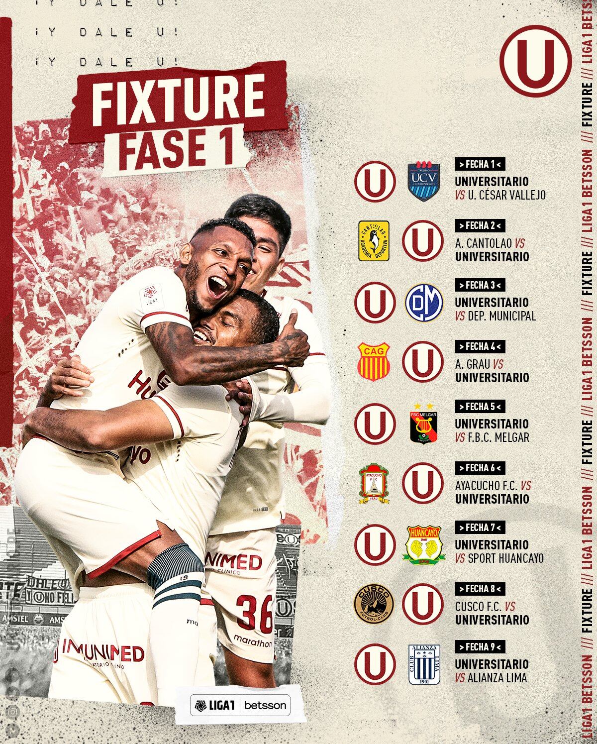 Universitario de Deportes ya conoce el orden en que enfrentará a los otros 17 equipos de la Liga 1 en búsqueda de la ansiada estrella 27. El sorteo que se realizó este miércoles 15 de diciembre en la Videna confirmó los difíciles duelos que los cremas afrontarán desde el 21 de enero.