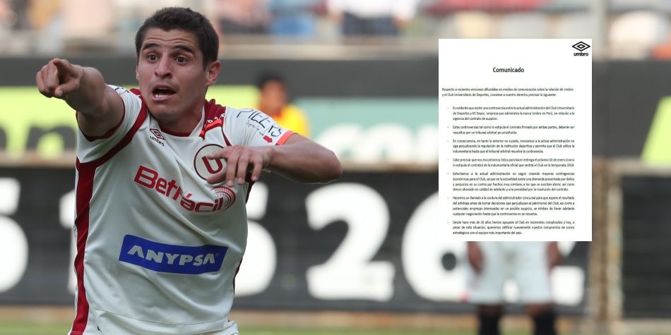 Además, Umbro señala que el contrato sigue vigente y que por ende Universitario debe de utilizar la indumentaria deportiva que sería entregada el 2 de enero al club.