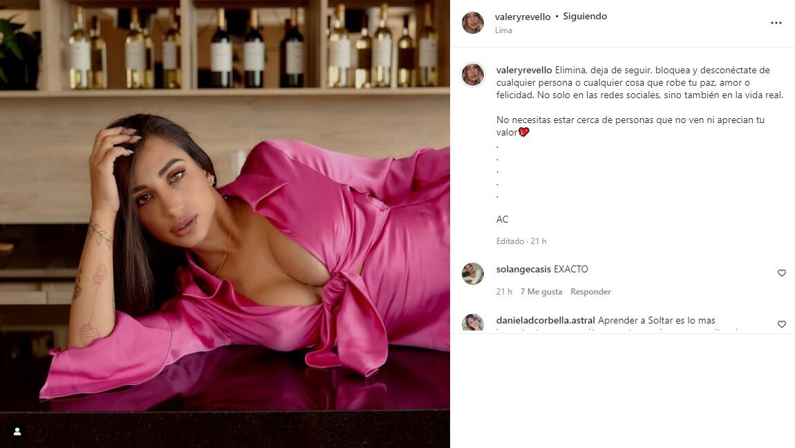 YA NO LO SIGUE. La modelo peruana Valery Revello protagonizó un candente ampay en el verano luego de que fuera vista con un surfer ingresando a un hotel por las playas del sur. Ahora, ella usa sus redes para enviar un potente mensaje con sabor a indirecta.