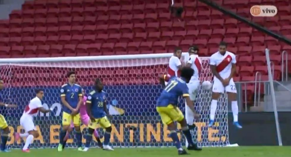 Sucedió en el minuto 48 cuando cobraron una falta a favor de Colombia. Gallese decidió armar una barrera de tres jugadores con Sergio Peña, Gianluca Lapadula y Alexander Callens.