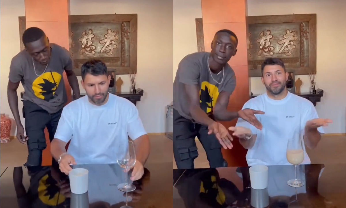 Khaby Lane se sienta, pero recibe un pelotazo. Al instante, el ‘Kun’ Agüero llega y vierte la bebida en el vaso sin que se caiga ante la atención de su compañero. Luego, ambos estiran las manos como siempre lo hace el reconocido tiktoker al final de sus clips.