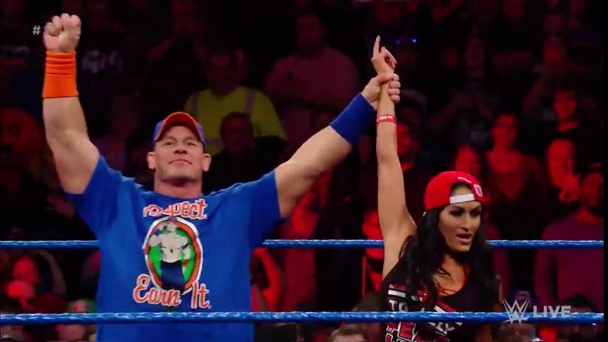 Pero es increpado por Maryse, quien abofetea a Cena. The Miz se escuda en las faldas de su esposa, hasta que la novia de John Cena, Nikki Bella, aparece corriendo hacia el ring.