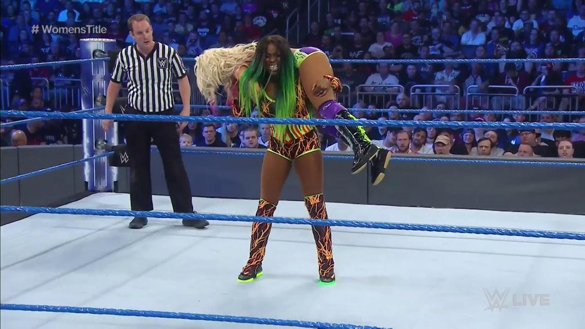 Pese al dominio de Alexa Bliss, Naomi se logró sobreponer y golpear a su rival con su clásica movida con los glúteos.
