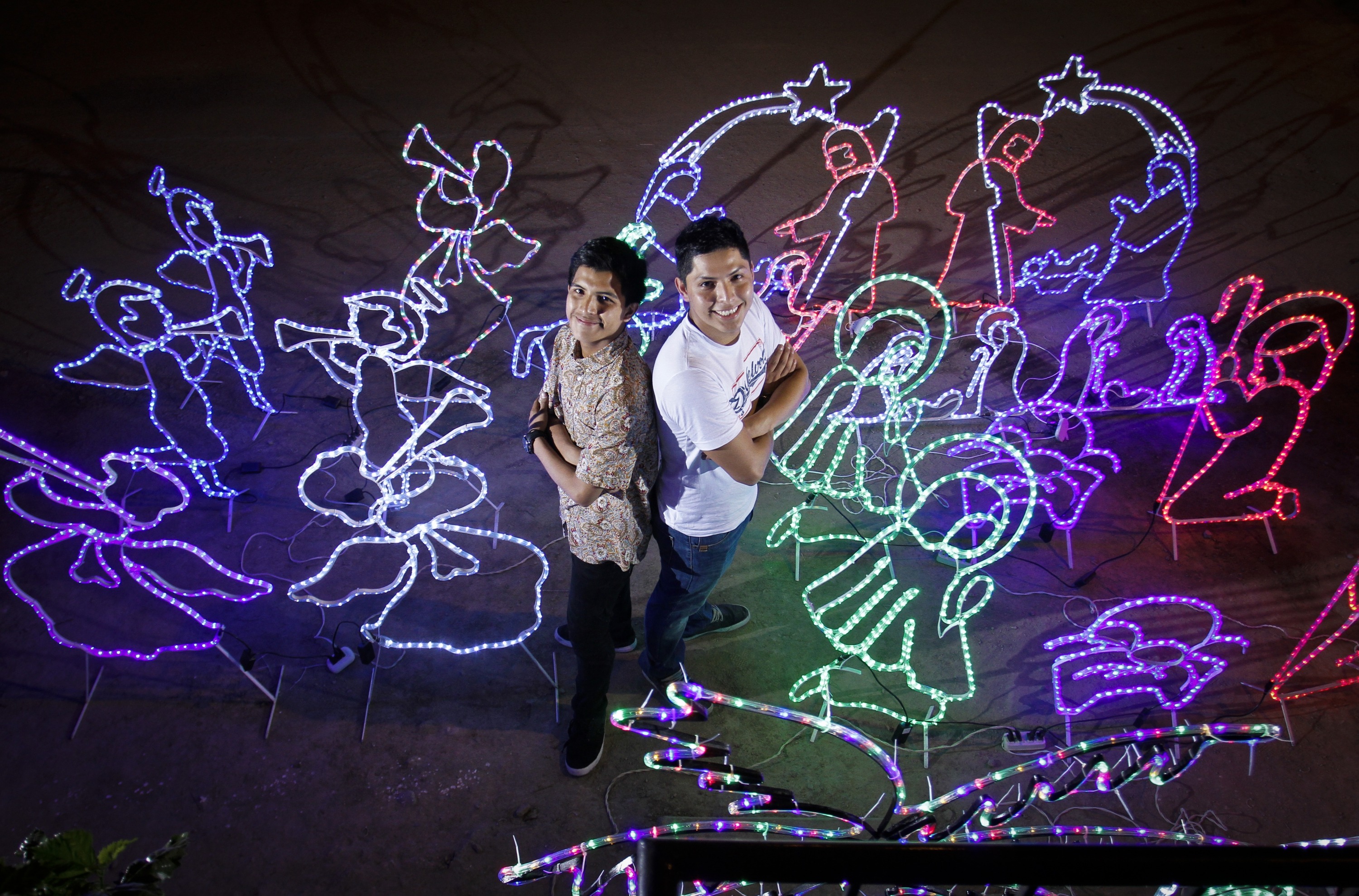 En Lima Norte, Flavio (21) y Marco Galván Huamán (18) son dos hermanos que encontraron una forma de pagar sus estudios construyendo siluetas navideñas, en Comas.