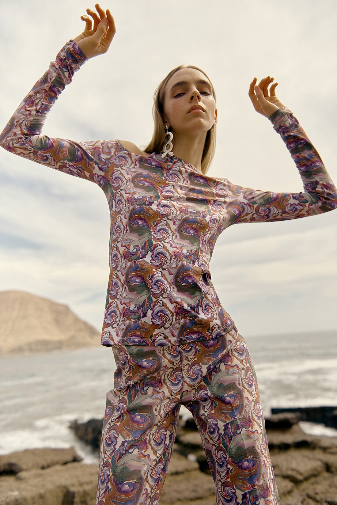 El uso de este tipo de materia prima se complementa también con procesos, como el diseño 3D, el cual les ayuda a visualizar ideas antes de crear prototipos, ahorrando así energía y transporte. Asimismo, la firma también hace uso del teñido natural con ingredientes de origen peruano como la beterraga, maíz morado y eucalipto.