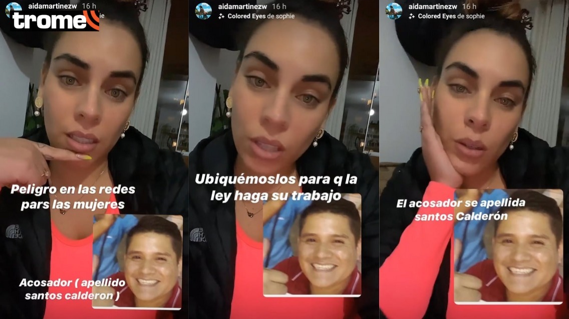 “Este acosador de apellidos Santos Calderón se ha conseguido el número de mi manager y ha mandado imagenes porno. Ha insultado a mi manager y a mí. Sé que él me sigue pero hay muchos que están ahí en redes sociales. Ayúdame a denunciarlo, quiero enviarle una carta notarial y denunciarlo para que este chico no siga acosando a más mujeres”, comenta Aída Martínez en el video.