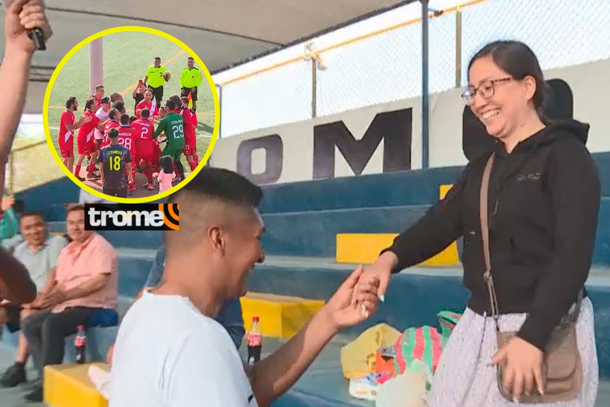 ¿SE SALARON? El partido de los ‘Once Machos’ liderado por Aldo Miyashiro y Óscar del Portal también tuvo su lado romántico tras el ampay del ‘Chino’ con la reportera Fiorella Retiz. En una reciente pichanga, un pelotero decidió pedirle matrimonio a su novia tras el término del partido y este fue ovacionado por todo el equipo.