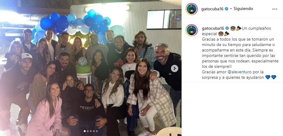 “Un cumpleaños especial. Gracias a todos los que se tomaron un minuto de su tiempo para saludarme o acompañarme en este día. Siempre es importante sentirse tan querido por las personas que nos rodean, especialmente los de siempre!! Gracias amor @aleventuro por la sorpresa y a quienes te ayudaron”, dijo.