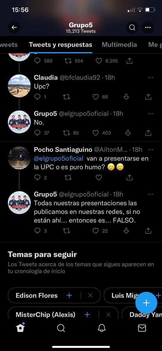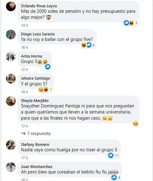 La universidad señaló que contrataron los servicios de Tito Silva para este evento y, de inmediato, los universitarios empezaron a reclamar a través de las redes sociales de la UPC, por no contratar finalmente al Grupo 5, señalando que el grupo de cumbia era una mejor opción y así lo hicieron saber.
