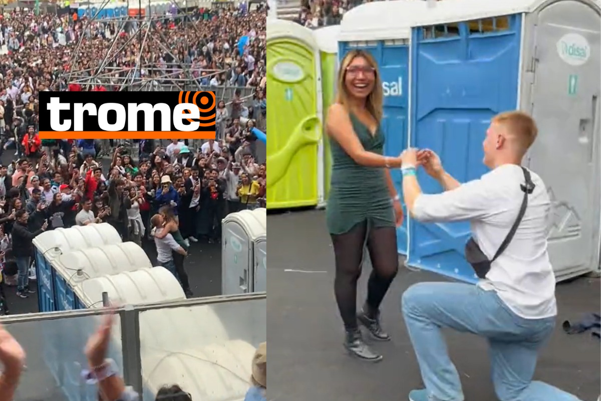 “Pedida de mano en concierto de Bad Bunny, pero al gringo solo le alcanzó para el de acero de 5 soles”, decía la descripción. No obstante, hubo un detalle que los internautas quedaron asombrados. El ambiente que el muchacho prefirió fue afuera de los baños de la cancha. Después, un grupo de jóvenes vestidos de ‘tiburones’ se les acercaron a bailar.