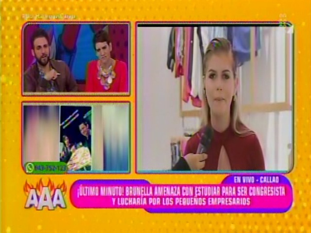 "Lucharía por los pequeños empresarios del Perú, como yo, porque el Estado no nos ayuda", remarcó Brunella Horna tratando de darle más seriedad a su propuesta. Para no dejarla mal, Peluchín agregó que prefería votar por ella que por cualquiera de los que ya están en el Congreso.