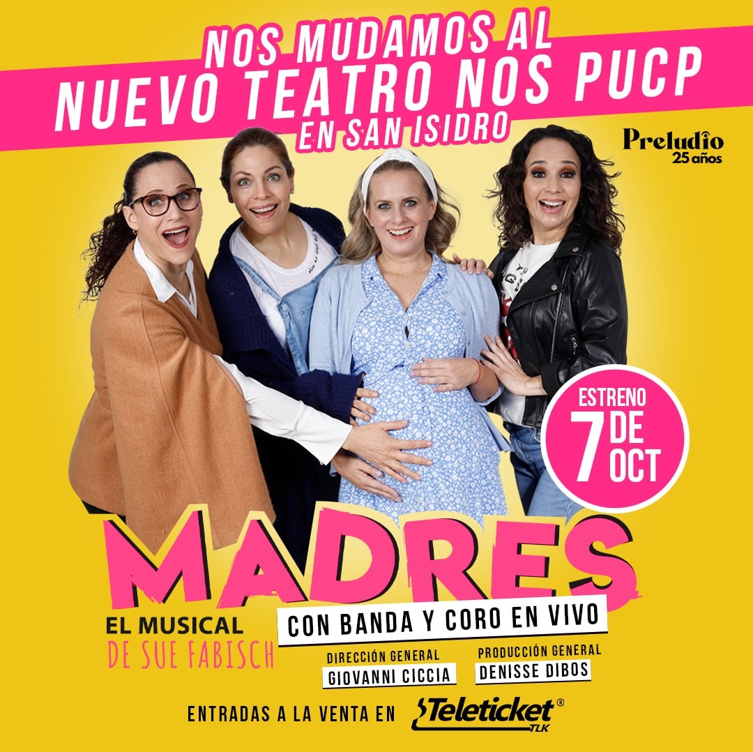 A ustedes y no se olviden que estamos en ‘Madres, el musical’ en el nuevo teatro ‘NOS PUCP’ en San Isidro. Con banda y coros en vivo y las entradas las adquieren por Teleticket.