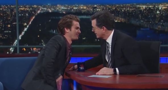 El actor Andrew Garfield asistió anoche al programa norteamericano de Stephen Colbert para explicar, de alguna forma, la verdad tras el beso que le dio a su compañero Ryan Reynolds.