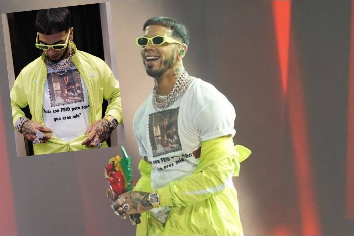 Gran indignación causó en redes sociales la aparición de Anuel vistiendo un polo con la imagen de Karol G y él con el siguiente mensaje: “Estas con Feid; pero sabes que eres mía”, esto ante la confirmación del romance entre la ‘Bichota’ y el cantante colombiano.