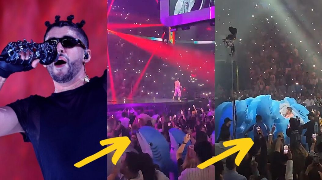 ¿LO HARÍAS? un grupo de fans acudió con disfraces de tiburón a uno de los conciertos de la gira de Bad Bunny sin imaginar que el cantante los reuniría para darles una emocionante sorpresa en pleno show.