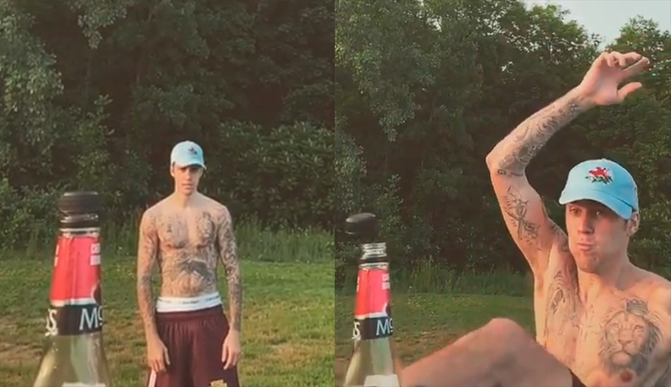 Justin Bieber lanzó el video el domingo a través de Instagram, mostrándose a sí mismo haciendo el famoso Bottle Cap Challenge, pero antes de realizarlo le dice a la cámara: "Esto podría ser la cabeza de Tom Cruise", y luego hace una patada giratoria para desenroscar completamente la tapa y mandarla a volar.