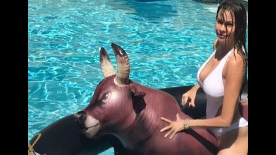Todo empezó cuando Sofía decidió disfrutar de los primeros días del verano. Es así que se puso un sexy trikini blanco y alistó la piscina con unos originales juguetes inflables. Entre ellos había un enorme toro tipo flotador.