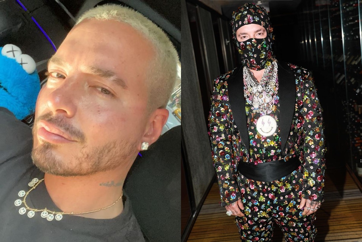 El artista colombiano se presentó a la gala con un traje negro con flores coloridas y las grandes joyas en el cuello, que representan su sello musical.
