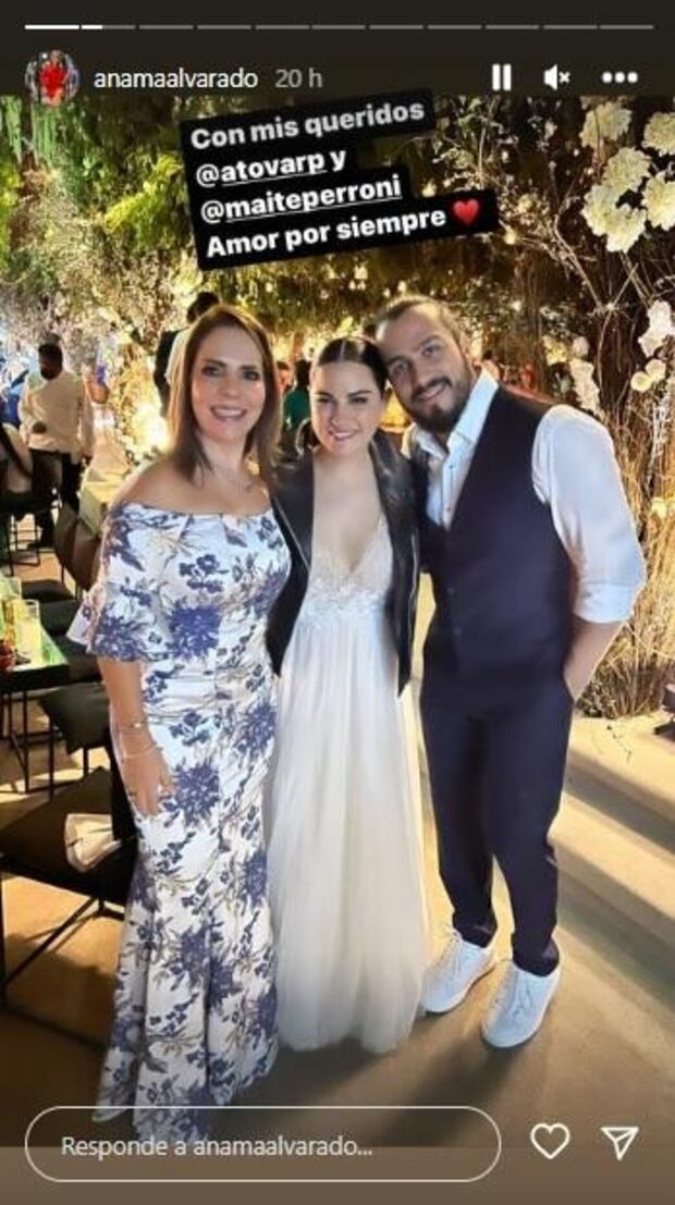 “Son cuatro vestidos, bueno, tres y medio, uno ahí lo camuflé”, declaró Maite Perroni al programa “Despierta América” sobre el vestuario que usó en su boda.