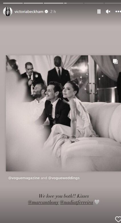 La esposa de David Beckham también compartió la felicidad de los recién casados y publicó una fotografía de ellos en sus historias de Instagram.