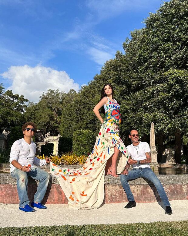 Marc Anthony también lo pasó de maravilla y plasmó el momento en sus redes sociales con una foto. En la imagen, su esposa aparece posando con la obra terminada y los dos hombres la acompañan sentados.