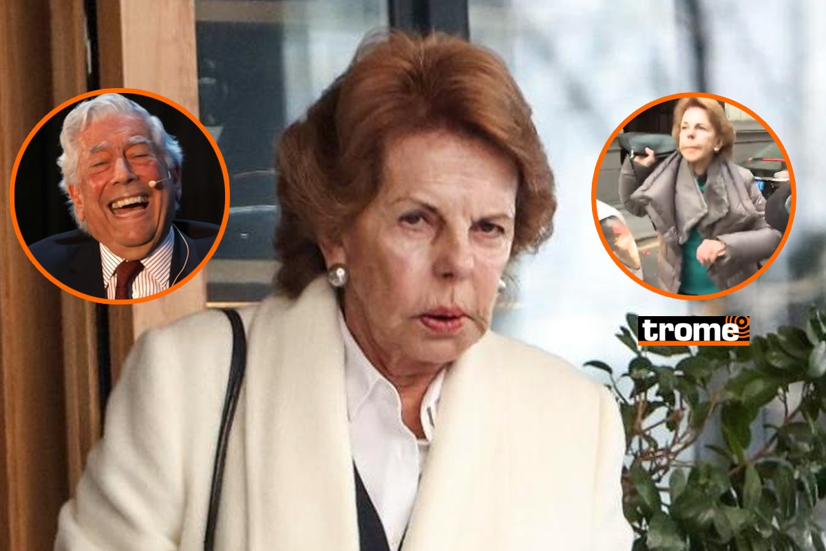Según se observa en un video, Patricia Llosa sale de la casa de Mario Vargas Llosa y se topó fortuitamente con los periodistas, algo que la irritó a tal punto de amenazar a una reportera con su bolso.