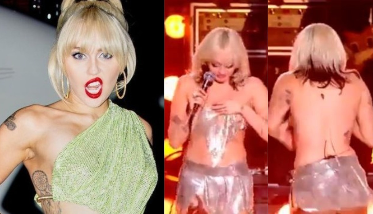 Frente a la situación, Miley sujeto la prenda con su mano y le dio la espalda al público mientras seguía cantando y caminando hacía la parte posterior del escenario de donde desapareció. Su banda continuó tocando la canción y las coristas intentaron hacer todo lo posible para que el show continúe, cantando la parte que debía interpretar Cyrus.