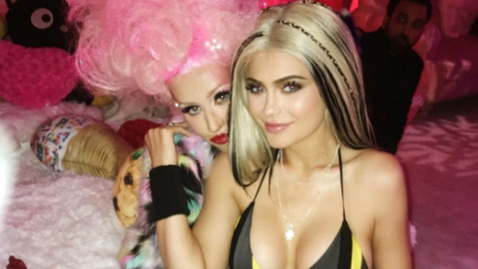 La celebridad lució una cabellera rubia con destellos negros y trenzas, además de un ceñido pantalón de cuero rojo que dejaba ver su ropa interior. Frente a la caracterización y lejos de la crítica, Christina se mostró honrada y agradecida con el atuendo de Kylie.