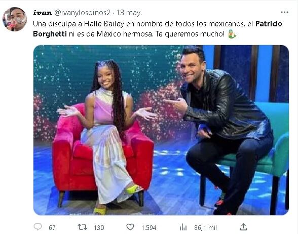 Ante los comentarios en su contra, Patricio Borghetti decidió responder a un usuario, comentando que lo que hizo fue decirle a Halle Bailey, que estaba ‘cambiando el mundo para mejor’.