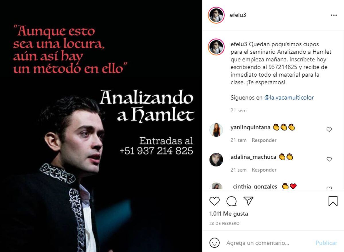 A la par tiene un taller de formación actoral a la que los interesados pueden acceder en base a audiciones. “¡Vuelve el TAFFEL! Con mucha alegría, presentamos la nueva versión presencial del Taller de Formación Actoral de Fernando Luque. ¿Cuál es la diferencia con los otros talleres que hemos venido realizando? Que en TAFFEL tenemos miras a una formación profesional, lo cual exige otro tipo de rigor, longitud de tiempo y complejidad en el proceso. Por ello para ingresar es necesario pasar por una audición, que en este caso será virtual y tendrá dos fechas de cierre”, escribió.