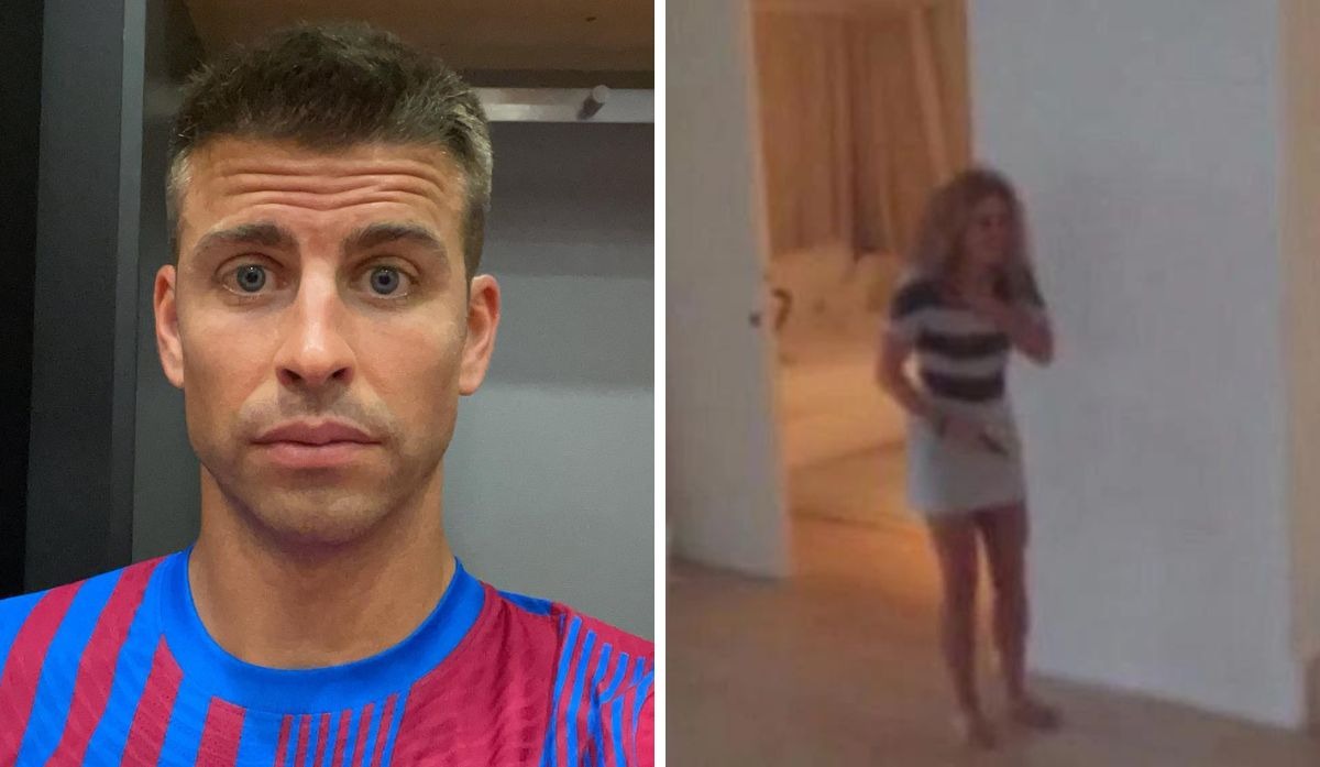 En la corta imagen se ve como Shakira se levanta de su sofá y el futbolista lanza el pelotazo, pero cae sobre la puerta. “A ver si le pego directamente en el pecho”, se oye decir al futbolista del Barcelona FC.