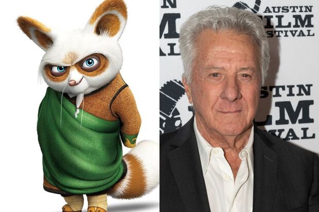 El brillante Dustin Hoffman, ganador de dos premios Óscar por su trabajo en “Rain Man” y “Kramer vs. Kramer”, es el maestro Shifu en la ficción. Él es un panda rojo albino que cumple el rol de mentor de nuestro protagonista, al ser el instructor de kung-fu de los Cinco Furiosos.