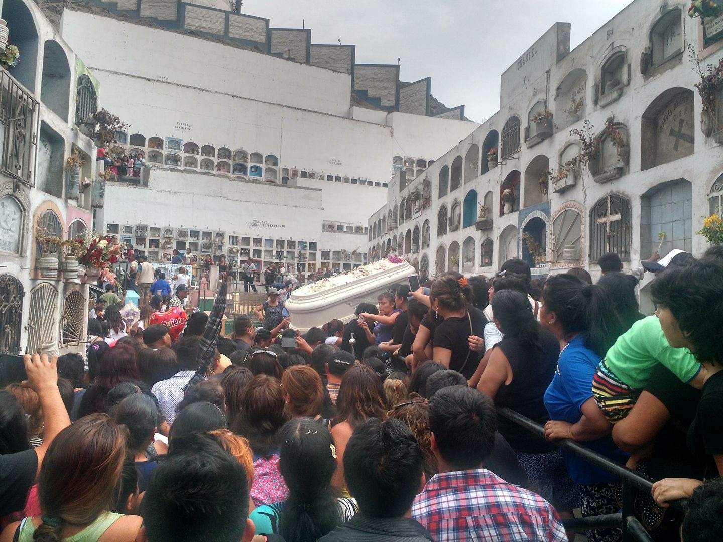 Los restos de la chica, quien tan solo tenía 23 años, reposan en un ataúd blanco. Los arreglos florales que enviaron los hinchas de Clavito y su chela, como de personas allegadas al ambiente de la cumbia, fueron muy notorios.