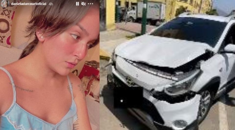 Daniela Darcourt publicó fotos de cómo quedó su auto tras el accidente, la parte de adelante se ve bastante dañada. “Hago estas historias para contarles que tuve un accidente automovilístico, los daños han sido materiales. Tengo un golpe en la rodilla que les voy a enseñar”, menciona la cantante.