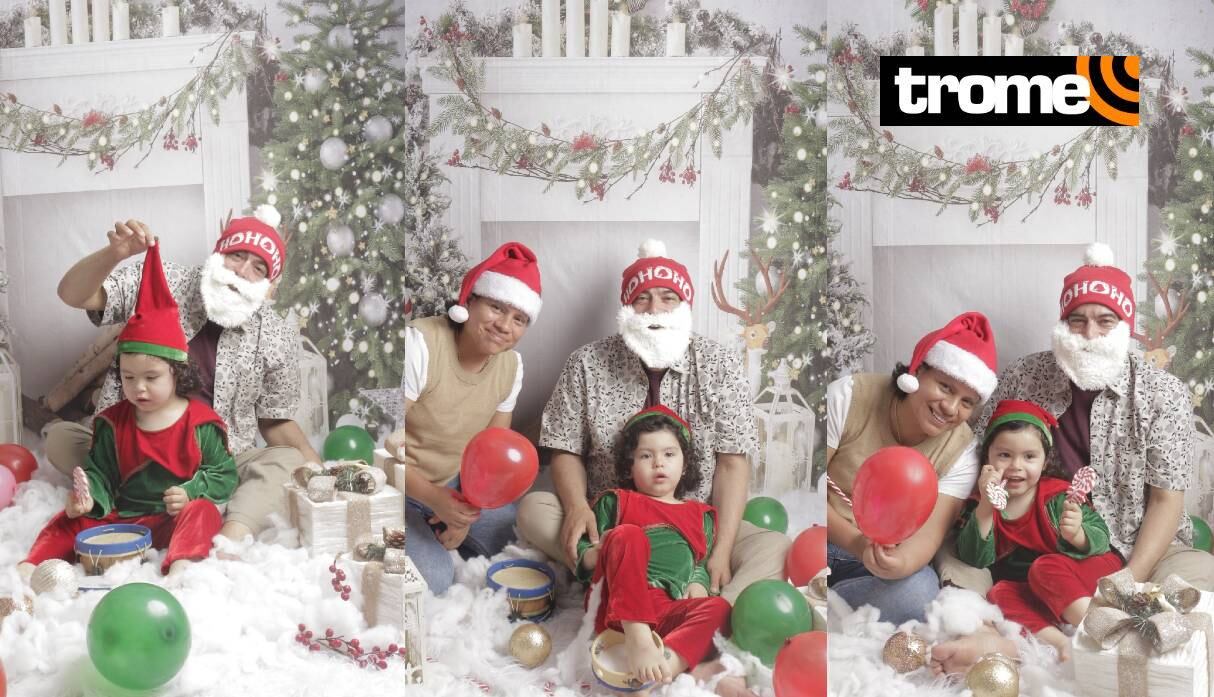 En las distintas imágenes, se puede apreciar de lo más feliz a Ernesto, Miluska y Gael con la decoración de temporada. Incluso, la figura de América TV personifica a Papá Noel para el retrato.