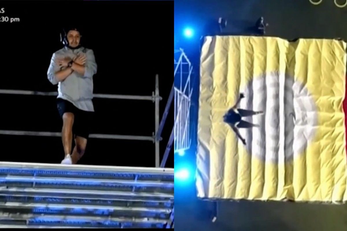 Johanna San Miguel y Gian Piero Díaz cumplieron el reto Salto al Vacío de Esto es Guerra, al arrojarse desde varios metros del altura sobre una colchoneta. Fueron momentos de alta tensión; pero los dos conductores realizaron el desafío, sin mayor percance.