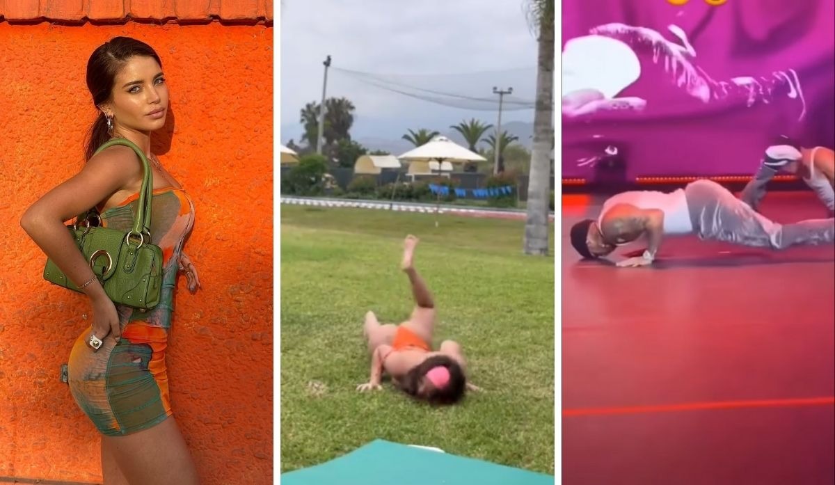 En las imágenes que la actriz compartió en su cuenta de Instagram se le ve haciendo su mejor esfuerzo para realizar este famoso paso con un diminuto bikini, no obstante, su falta de resistencia hizo que se rindiera fácilmente.